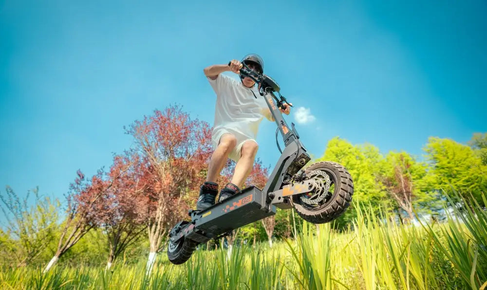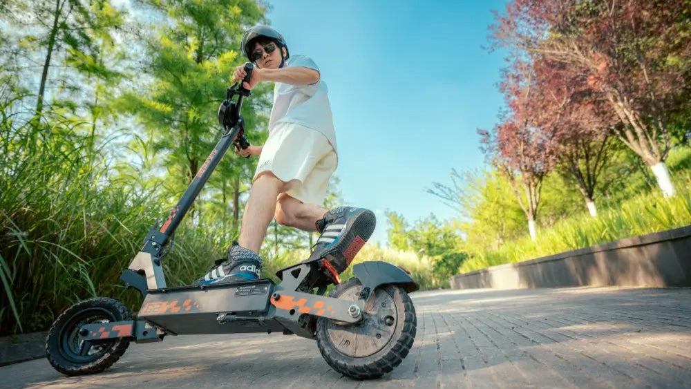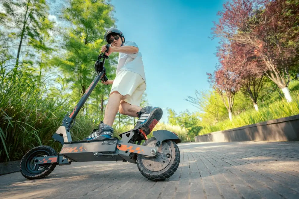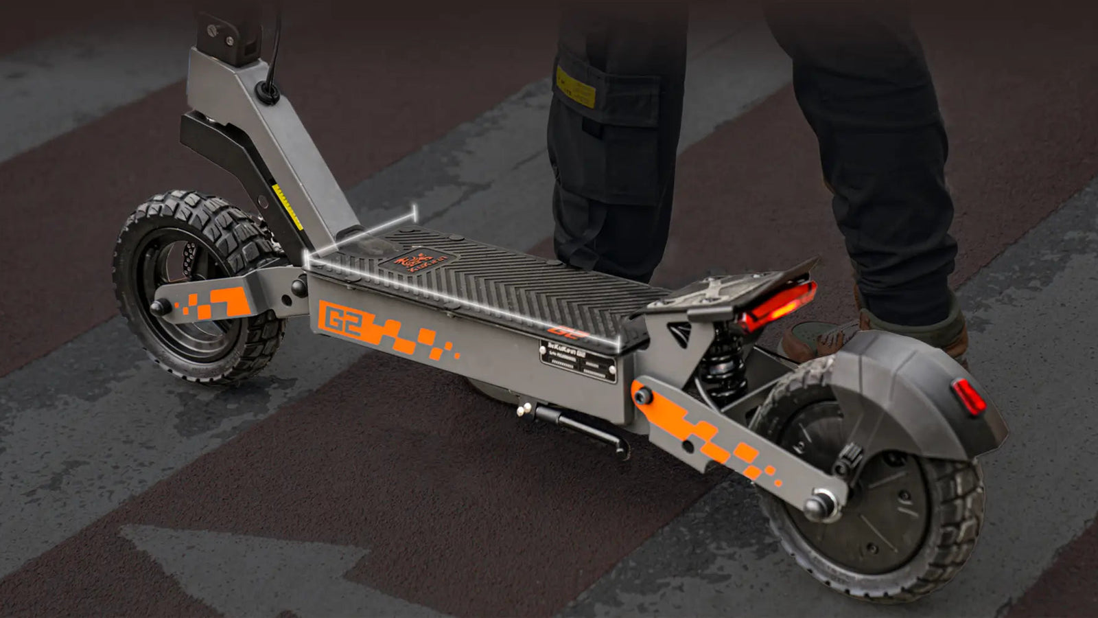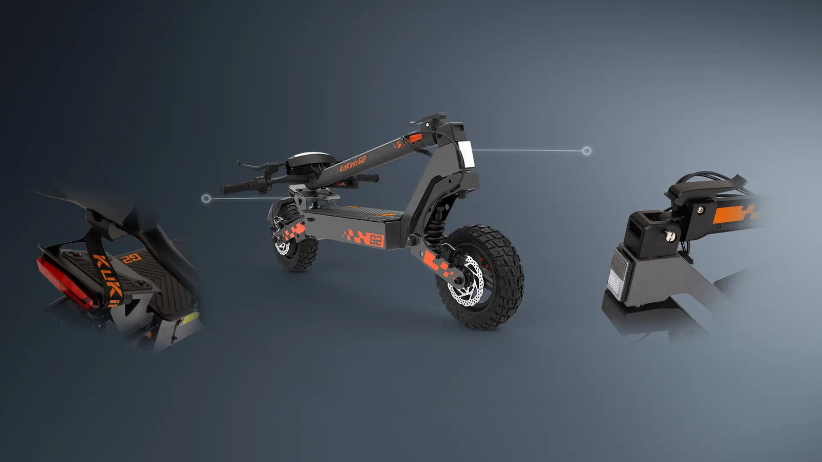 The KuKirin G2 is equipped with 10-inch off-road vacuum tires and front and rear spring dampers, whose excellent grip and shock absorption ensure a smooth ride in all road conditions. The design of the vacuum tires reduces the risk of flat tires and increases driving safety and comfort. Whether it's on city tarmac or gravel trails in the countryside, the KuKirin G2 can handle it with ease, providing you with an unparalleled riding experience.