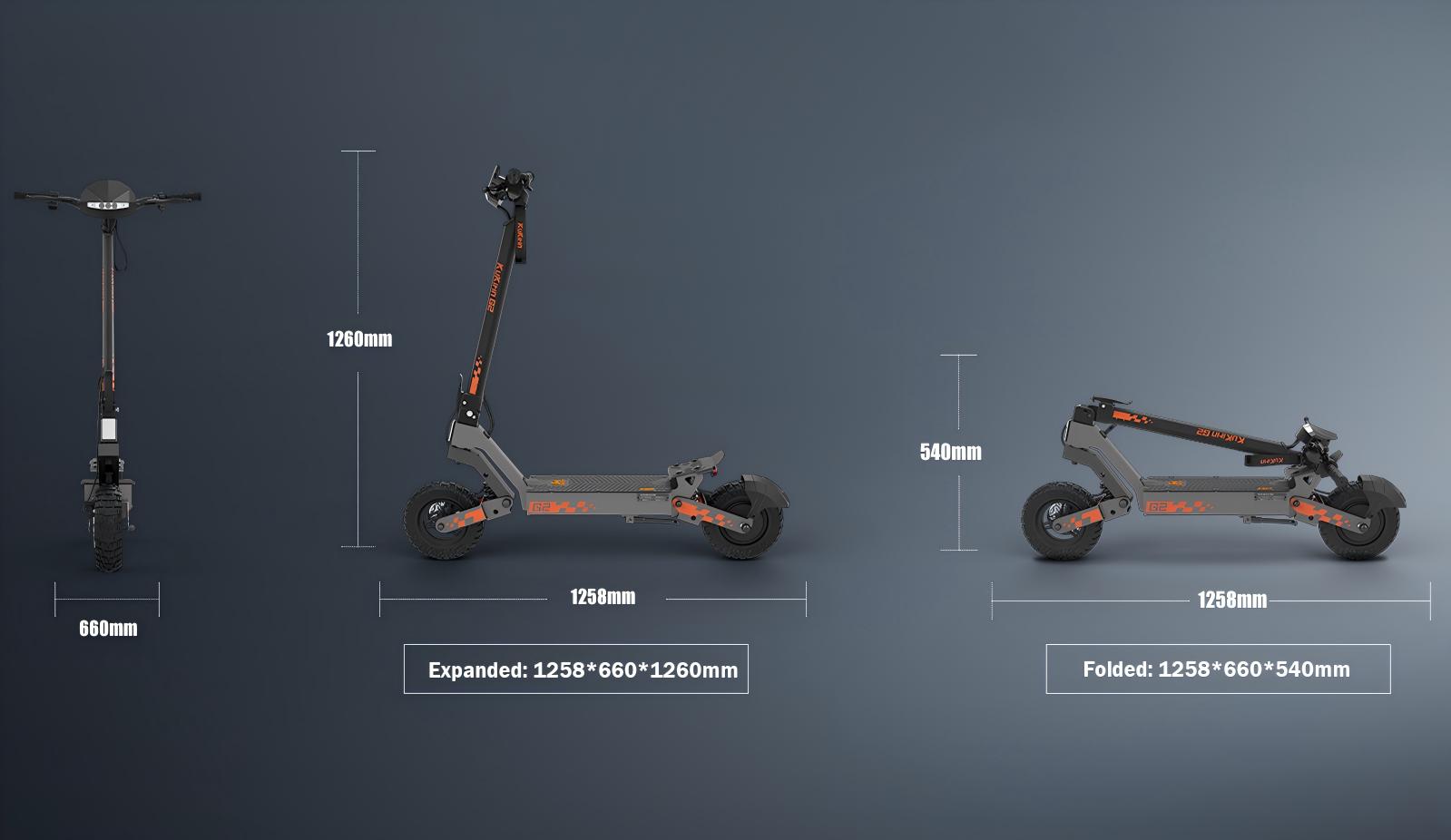 Frame SizePacking sizeExpend sizeFold sizeHandlebar sizePedal sizePedal to Handlebar sizeChassis heightSize1235*205*575mm(L*W*H)1258*660*1260mm(L*W*H)1258*660*540mm(L*W*H)660mm460*185mm(L*W)990mm175mm
