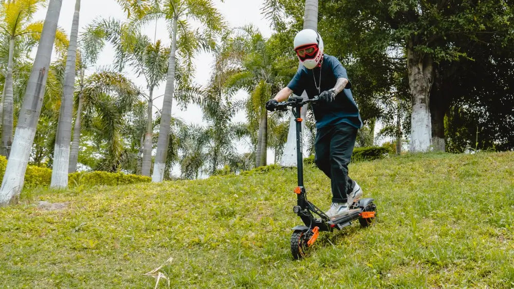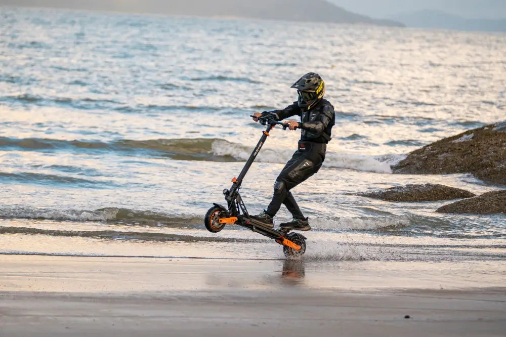 KuKirin G2 Max with 10 Inch “large”wheel,say "back" to the bumps, give you a steady sense of comfort, high speed over the speed bumps, gently over without stopping, potholes and sandy roads, filtering bumps hand not numb.