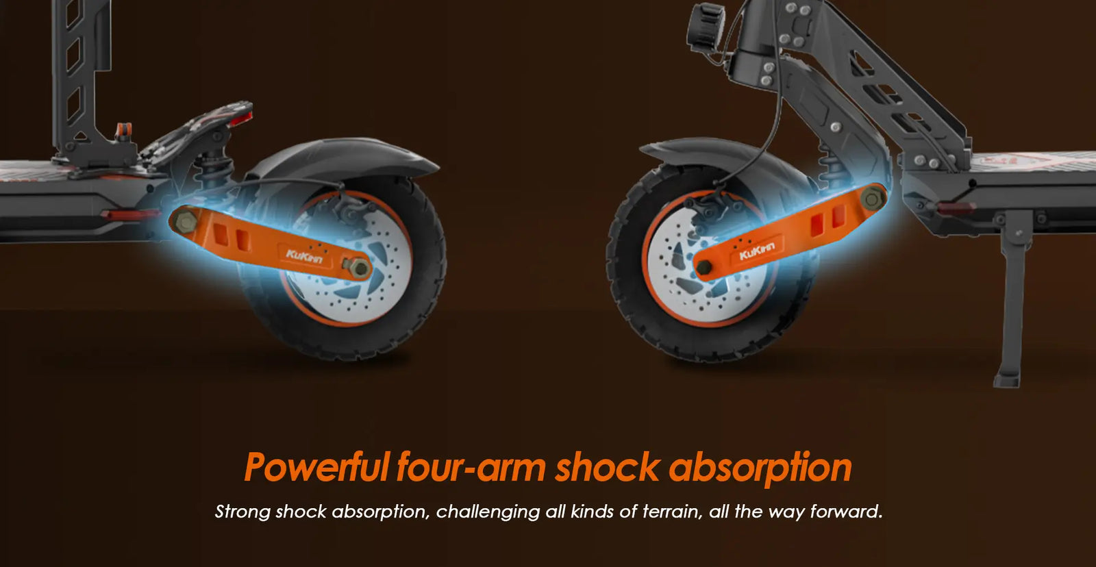 KuKirin G2 Max with precisely tuned spring dampers to cushion bumps from complex terrain, you can ride it over rough roads to maximize your fun and enjoy a comfortable ride every time you set out.