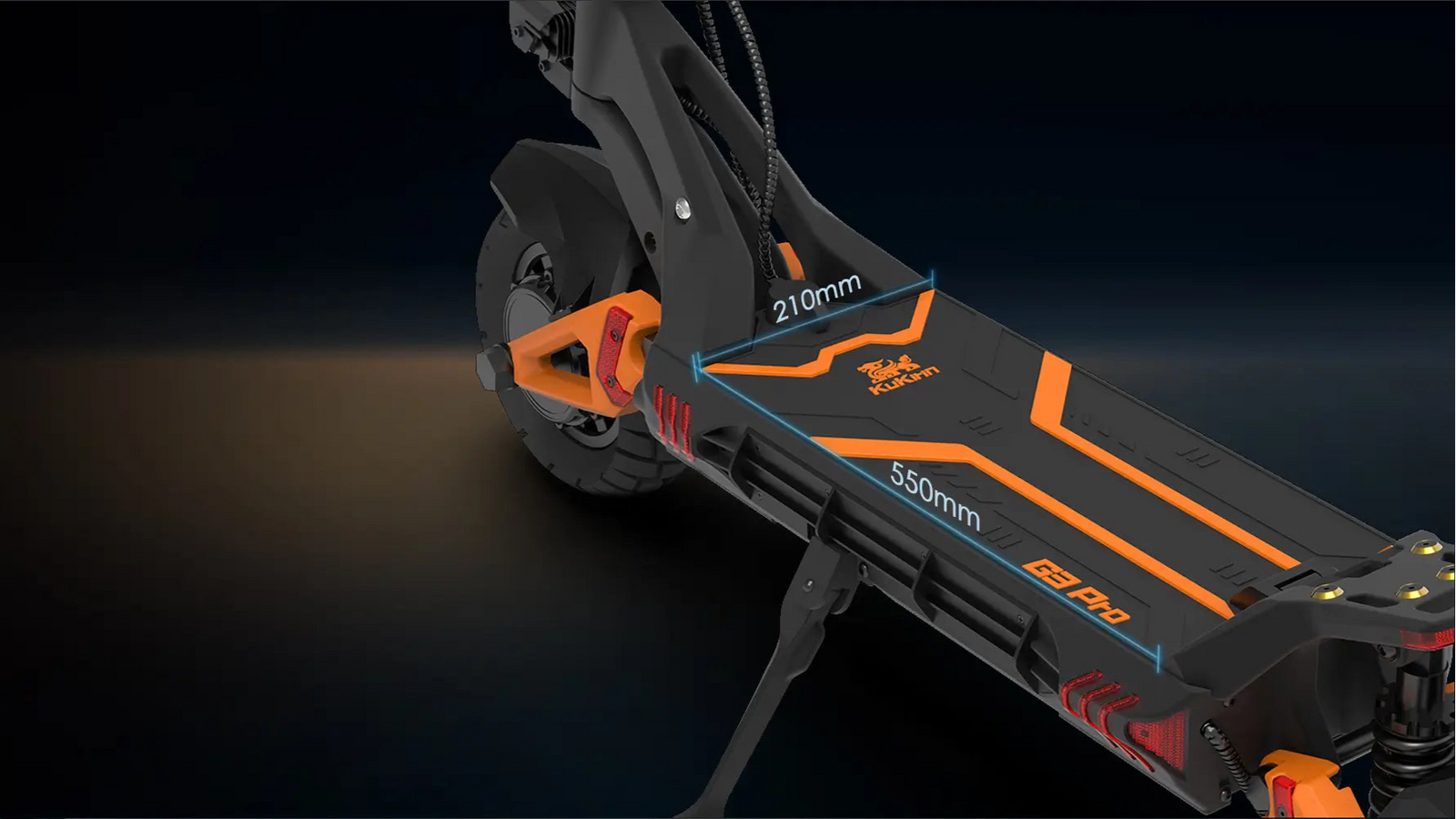 The Kukirin G3 Pro features extra-long, oversized pedals (550mm x 210mm), providing a larger foot space for a comfortable, stable ride. The generous pedal area ensures security and comfort, while the cool design adds style, offering a unique and enjoyable riding experience.