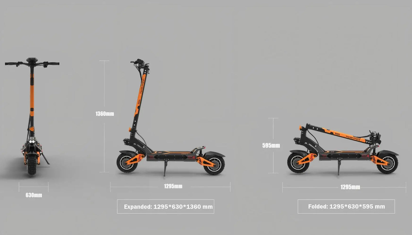 Frame SizePacking sizeExpend sizeFold sizeHandlebar sizePedal sizePedal to Handlebar sizeChassis heightSize1330*312*645mm(L*W*H)1295*630*1360mm(L*W*H)1295*630*595mm(L*W*H)650mm550*210mm(L*W)1050mm180mm