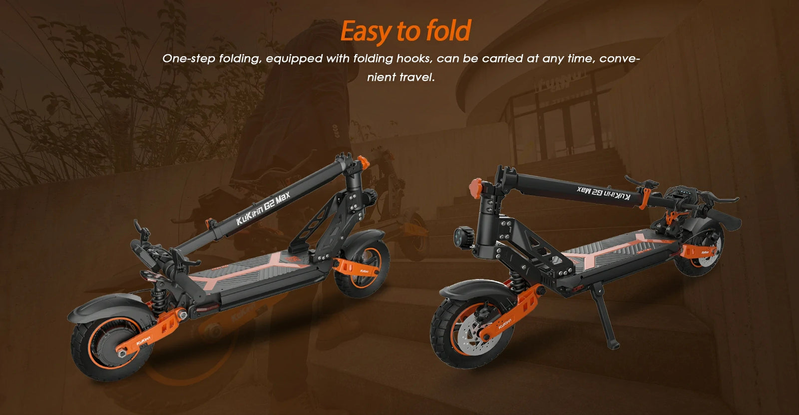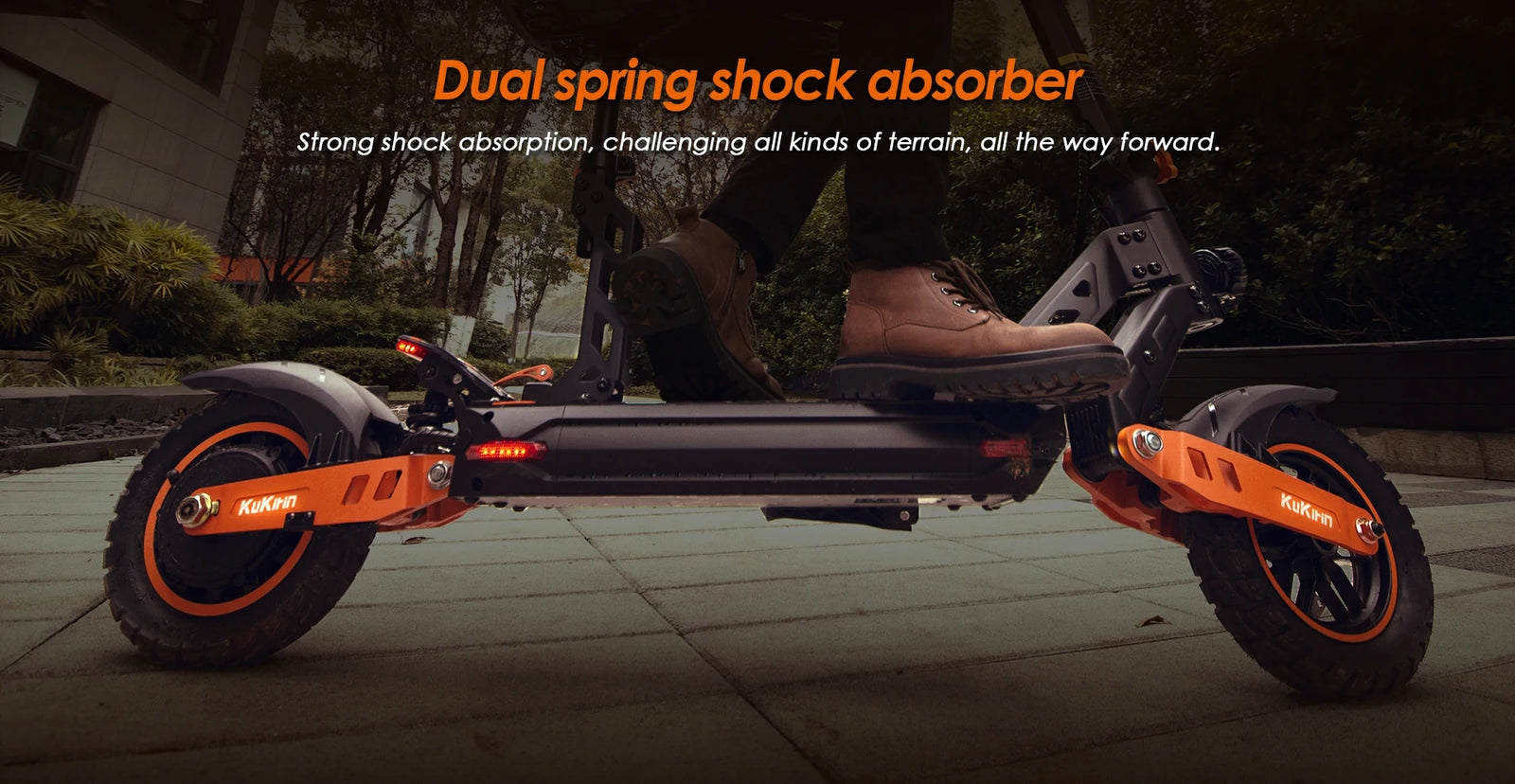 KuKirin G2 Max with precisely tuned spring dampers to cushion bumps from complex terrain, you can ride it over rough roads to maximize your fun and enjoy a comfortable ride every time you set out.