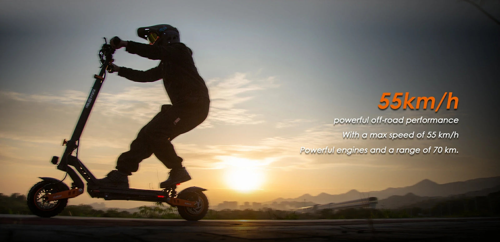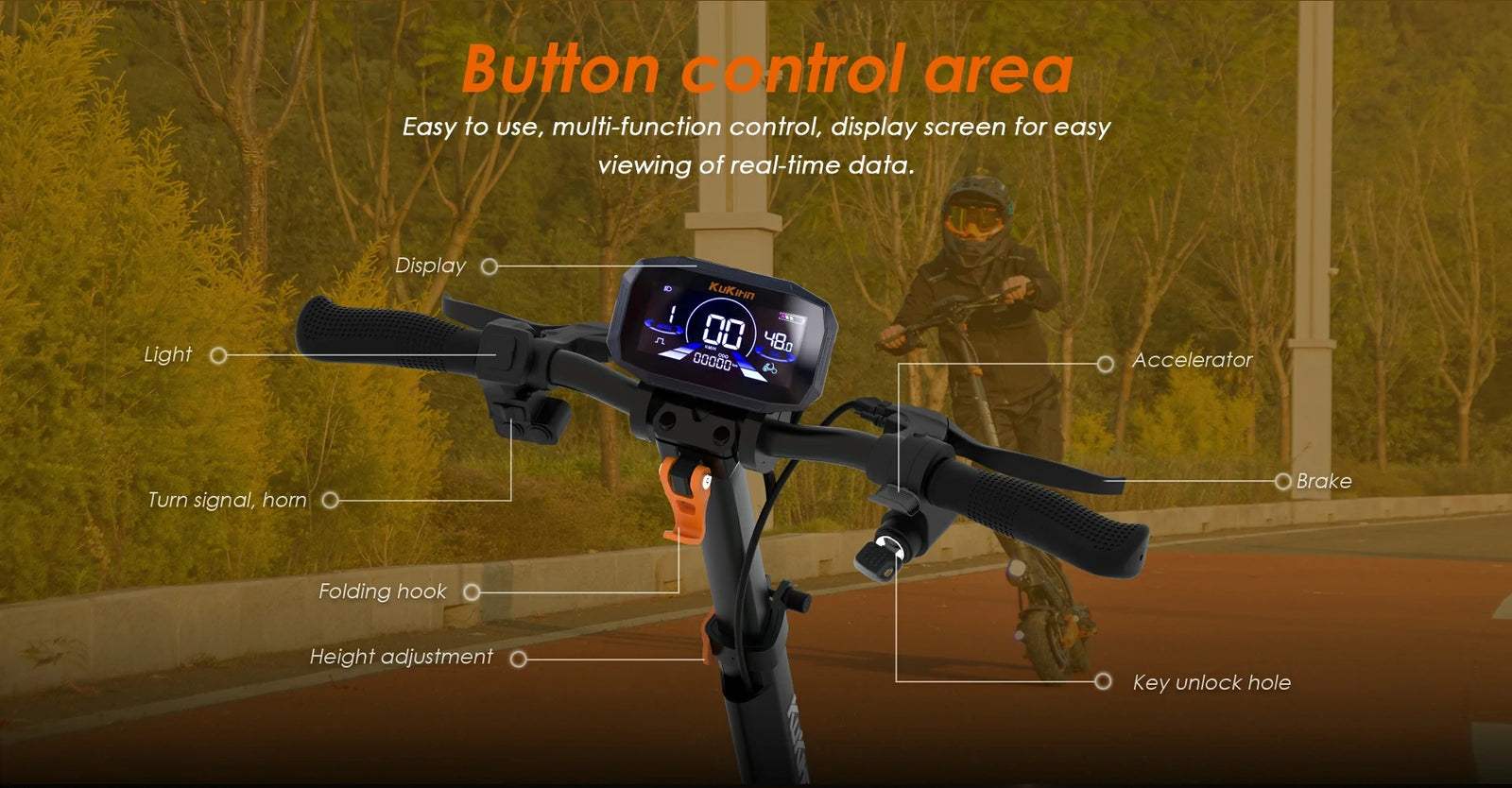 KuKirin G2 Max with 10 Inch “large”wheel,say "back" to the bumps, give you a steady sense of comfort, high speed over the speed bumps, gently over without stopping, potholes and sandy roads, filtering bumps hand not numb.