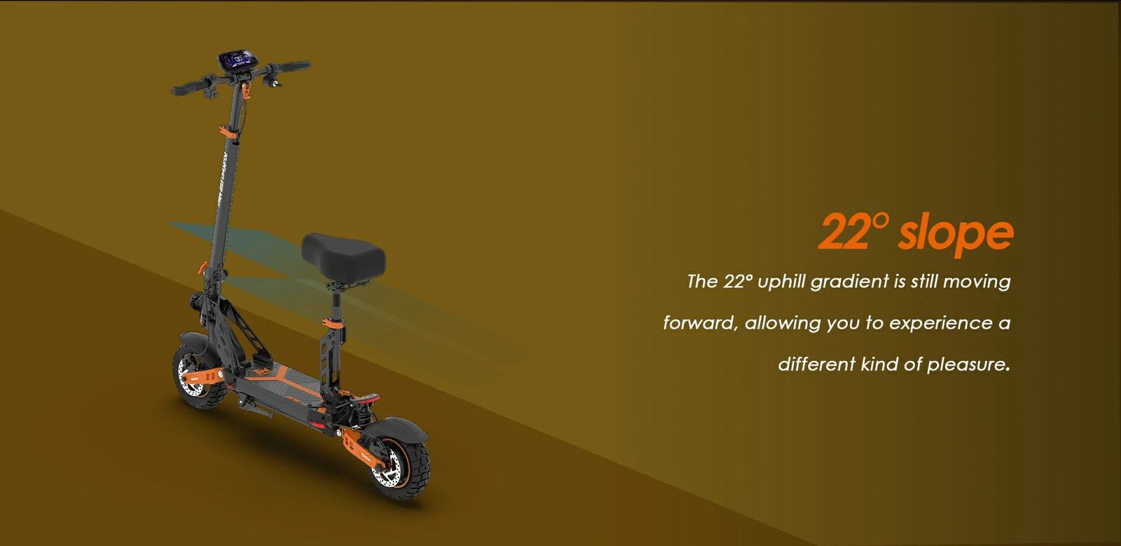 KuKirin G2 Max uses 1000W super-powerful motor, the maximum climbing degree reaches an amazing 22 °, can fully meet the more complex, more bumpy road conditions, so that you no longer worry about climbing and wading.