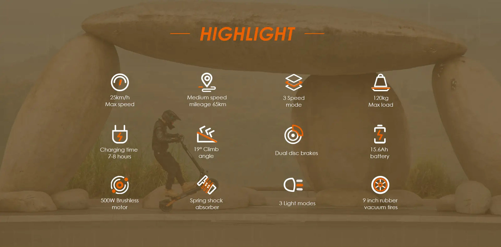 Built-in 500W high-performance brushless motor provide strong power ouput,Built-in 500W high-performance brushless motor provides powerful power output, whether it's a steep hill or a straight and level avenue, you can easily cope with it, and enjoy a blistering sense of speed.