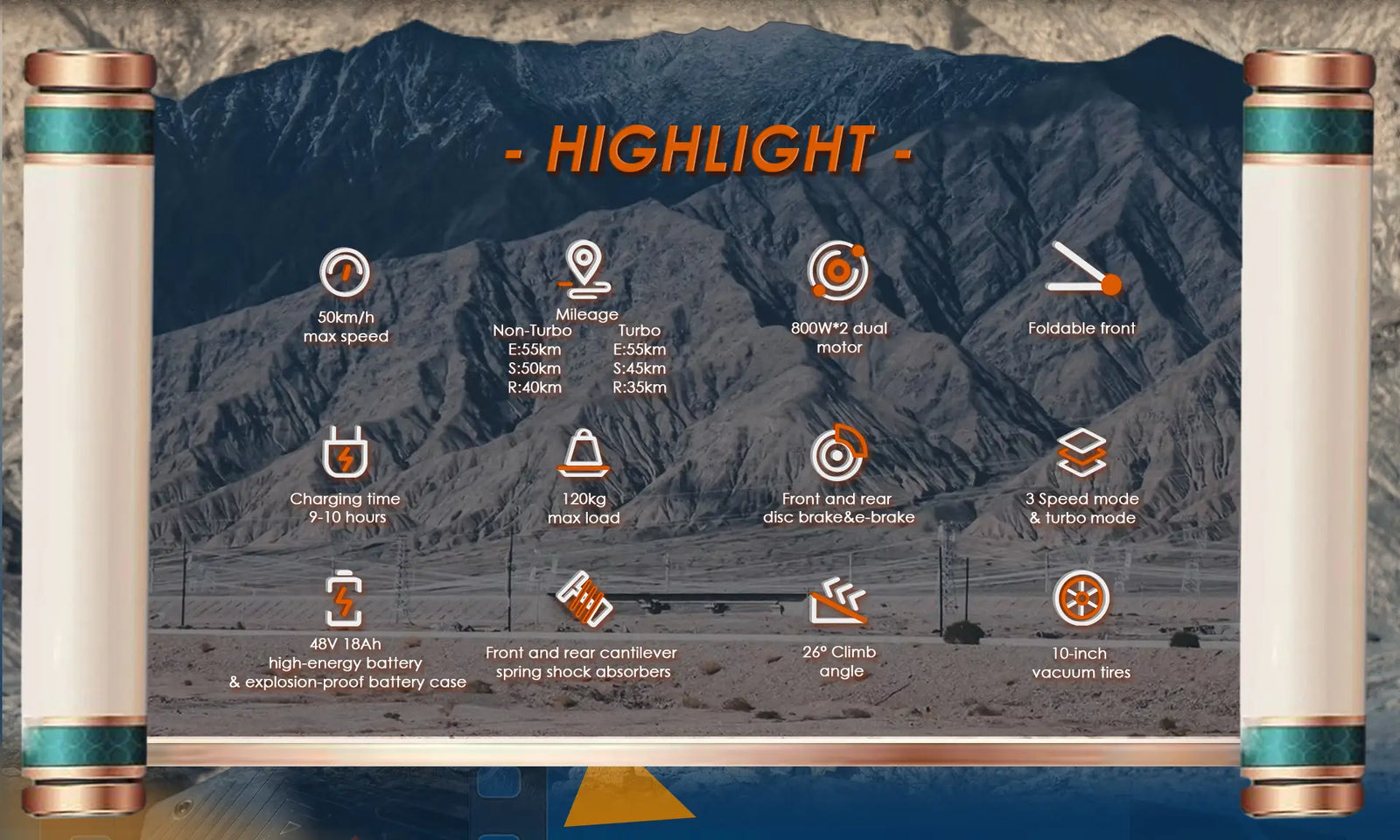 Battery48V 18AhCharger54.6V2A 100-240VSpeed ClassECO Mode (25KM/H)