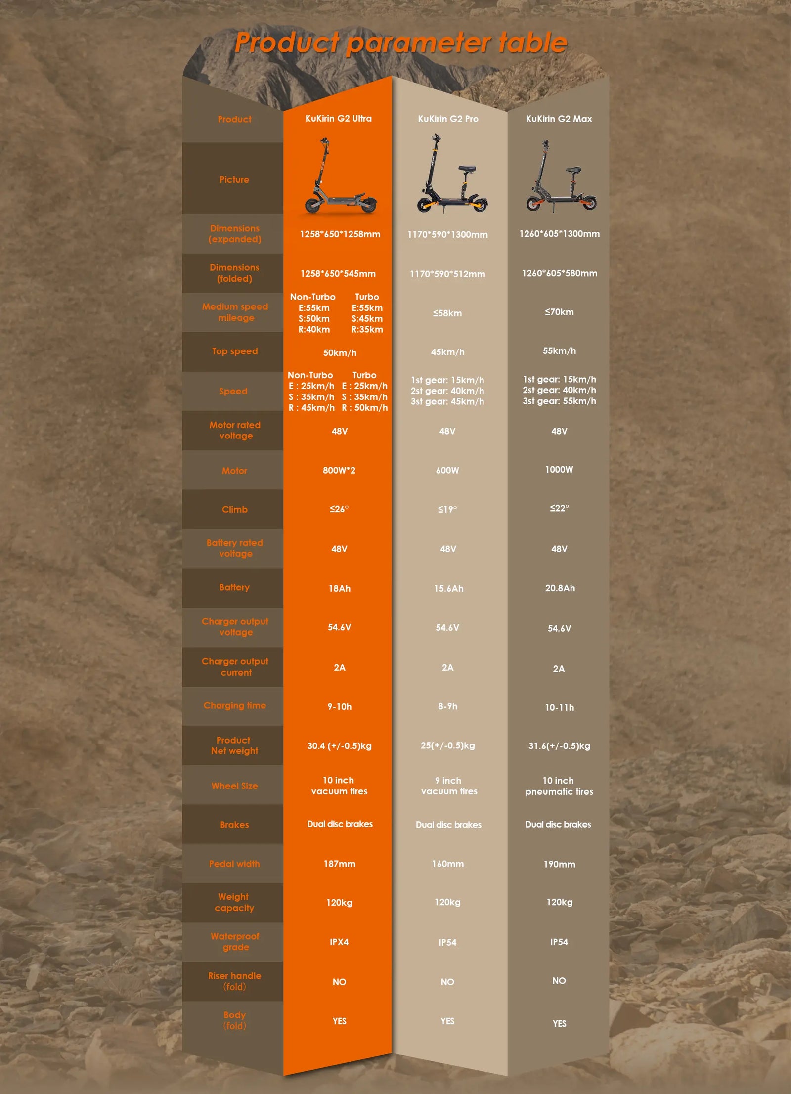 KuKirin G2 Ultra features an innovative one-key folding mechanism that allows the scooter to be quickly collapsed to a compact size of 1258*650*545mm in seconds. This feature makes it easy to carry and store, ideal for commuters and those with limited space.