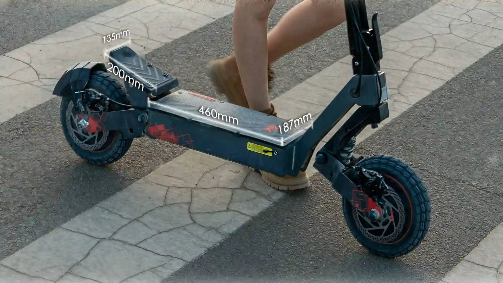 The 460mm*187mm extra-large pedal space, the additional 200mm*135mm rearpedal, and the humanized rear pedal design make riding more comfortable andgive you a different riding experience.