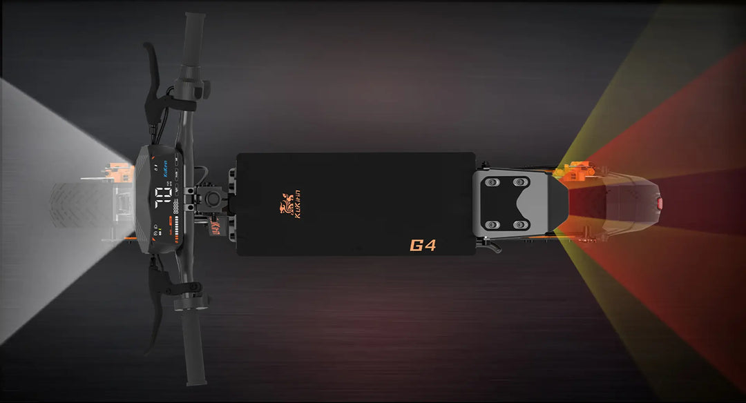 KuKirin G4 stud adopts hollow shape design, which retaining the original section division, compact and simple bodycompact,showing speed and strength. It pursues high appearance while achieving better wind breaking results, pushing the speed and power aesthetics of high-power electric scooters to a new level.