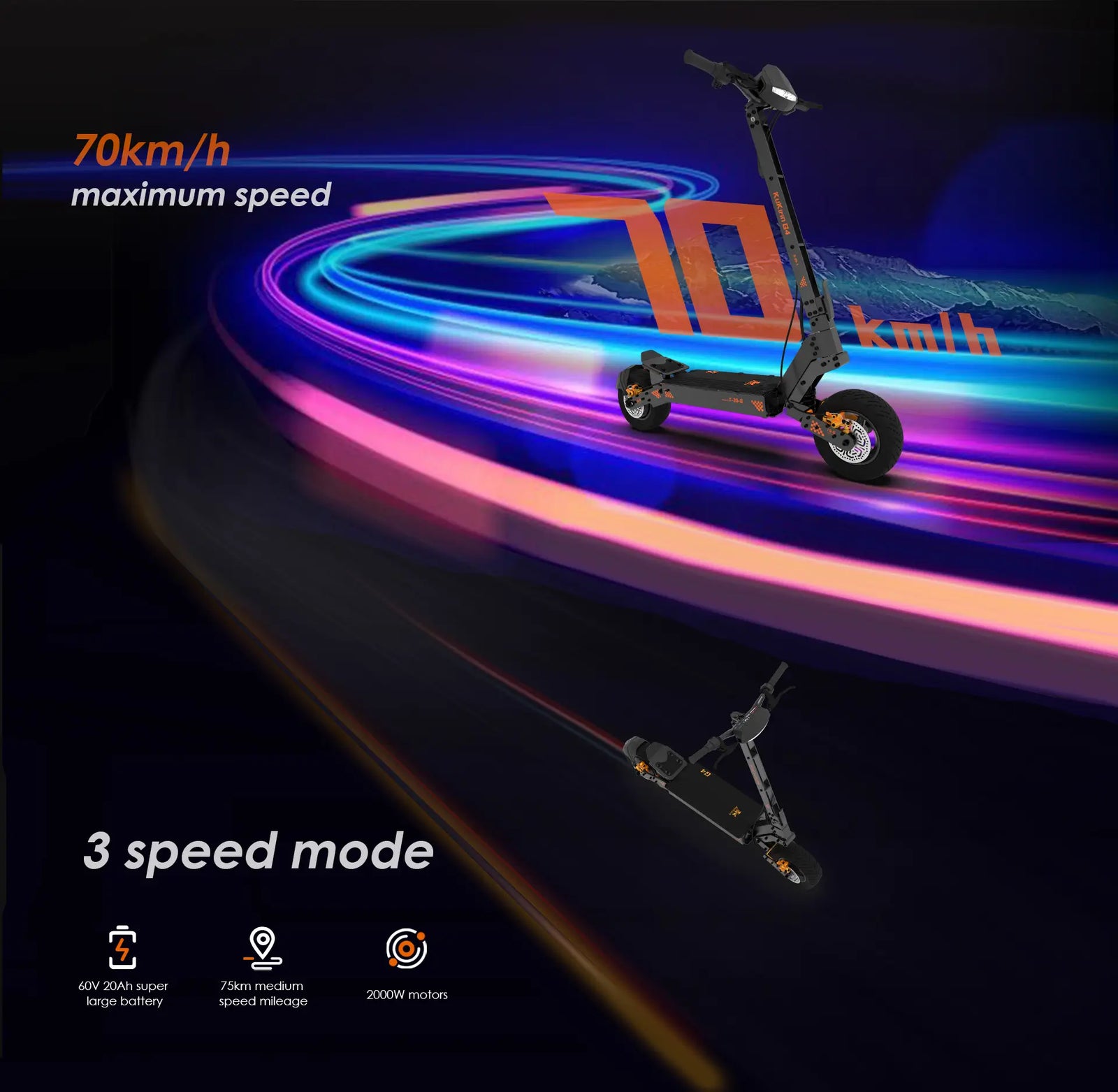 KuKirin G4 uses a 2000Wh ultra-high power integrated wheel hub motor with a maximum speed of up to 70 km/h. The motor uses a double cooling structure to maintain performance for a longer period of time.
