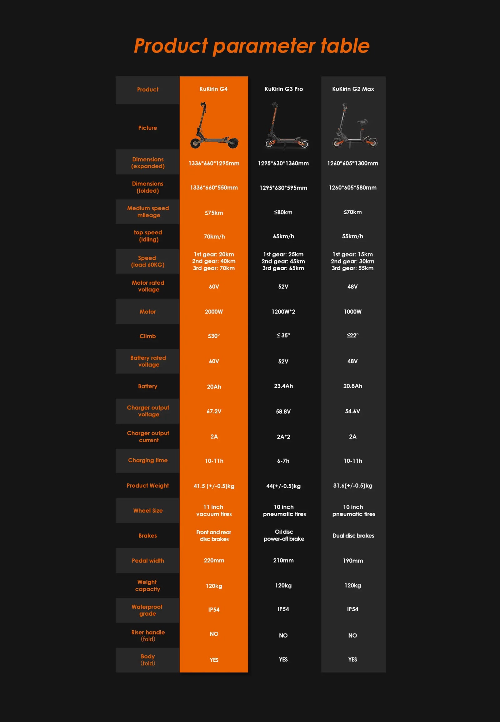 • With one-touch folding technology, the KuKirin G4 can be easily folded into a compact form in seconds, making it easy to store in the trunk of a car, the corner of an office, or any space in your home. With its lightweight design, the KuKirin G4 truly realizes the freedom to travel wherever you go.