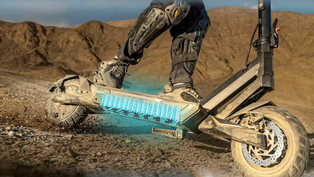 KuKirin T3 comes with customizable multi-color side LED strips that support multiple lighting modes including steady glow, gradient color shift, and breathing rhythm. This feature not only enhances visibility but also lets you express your unique style day or night.