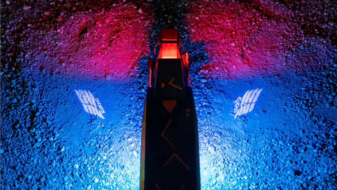 The rear dual projection lights cast a distinctive blue “angel wing” pattern on the ground when activated. This eye-catching design boosts nighttime safety while adding a touch of personalized ceremony to every ride.