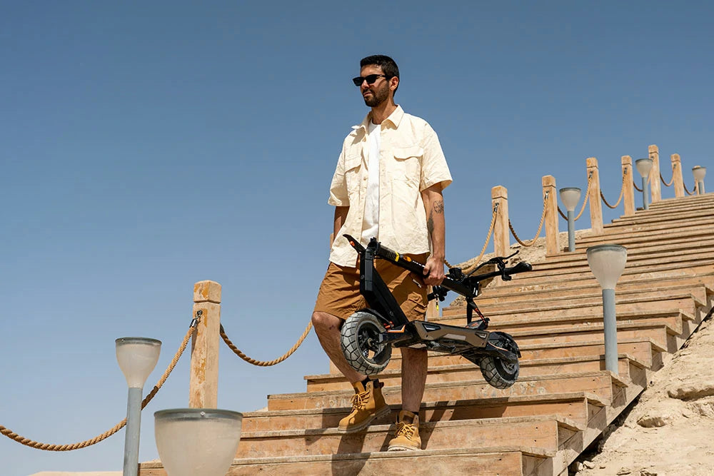 The T3 can be quickly folded down to a compact size of 1230*640*620mm in seconds, making it easy to store in tight spaces or carry on public transport. Ideal for urban commuters seeking practicality without compromise.